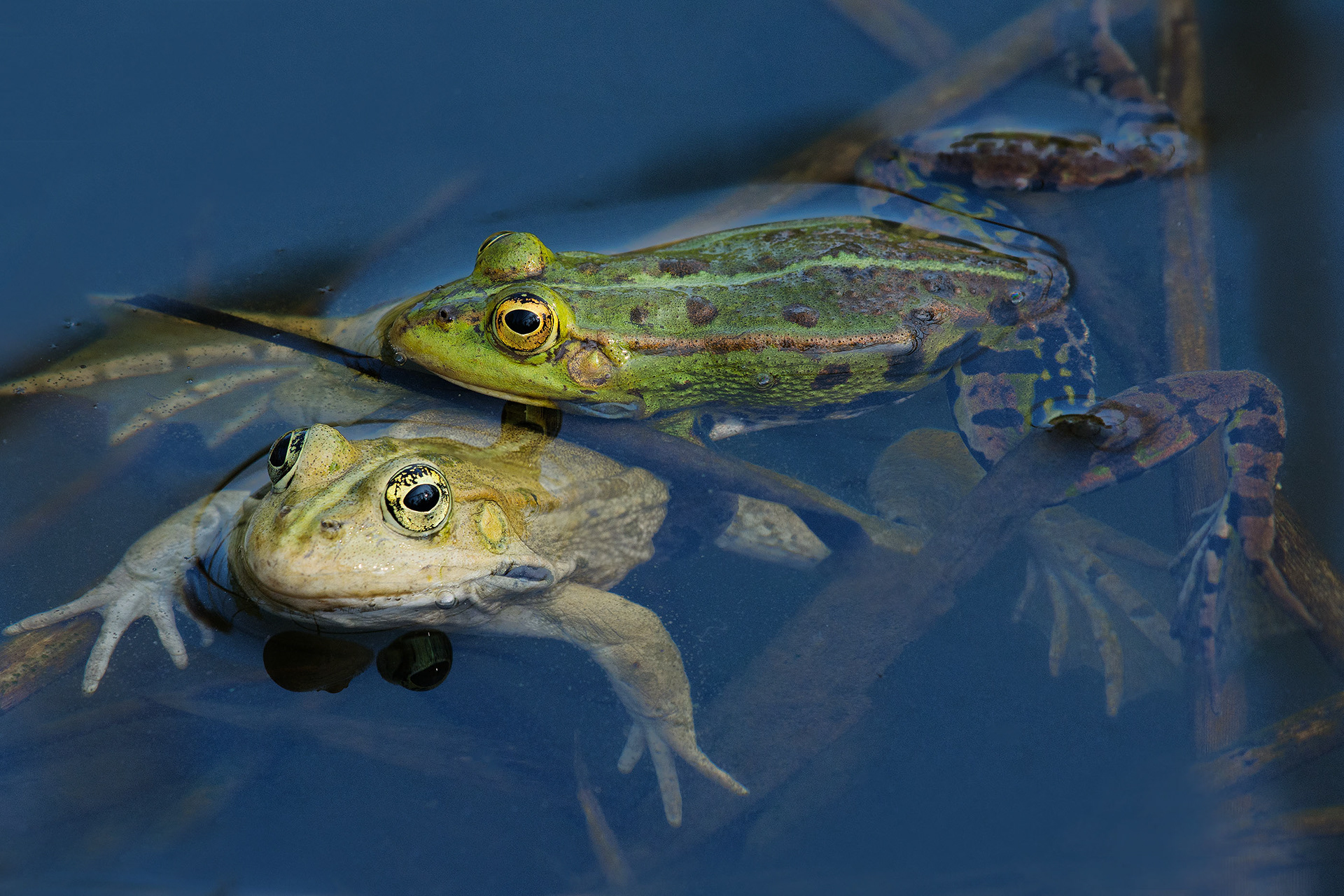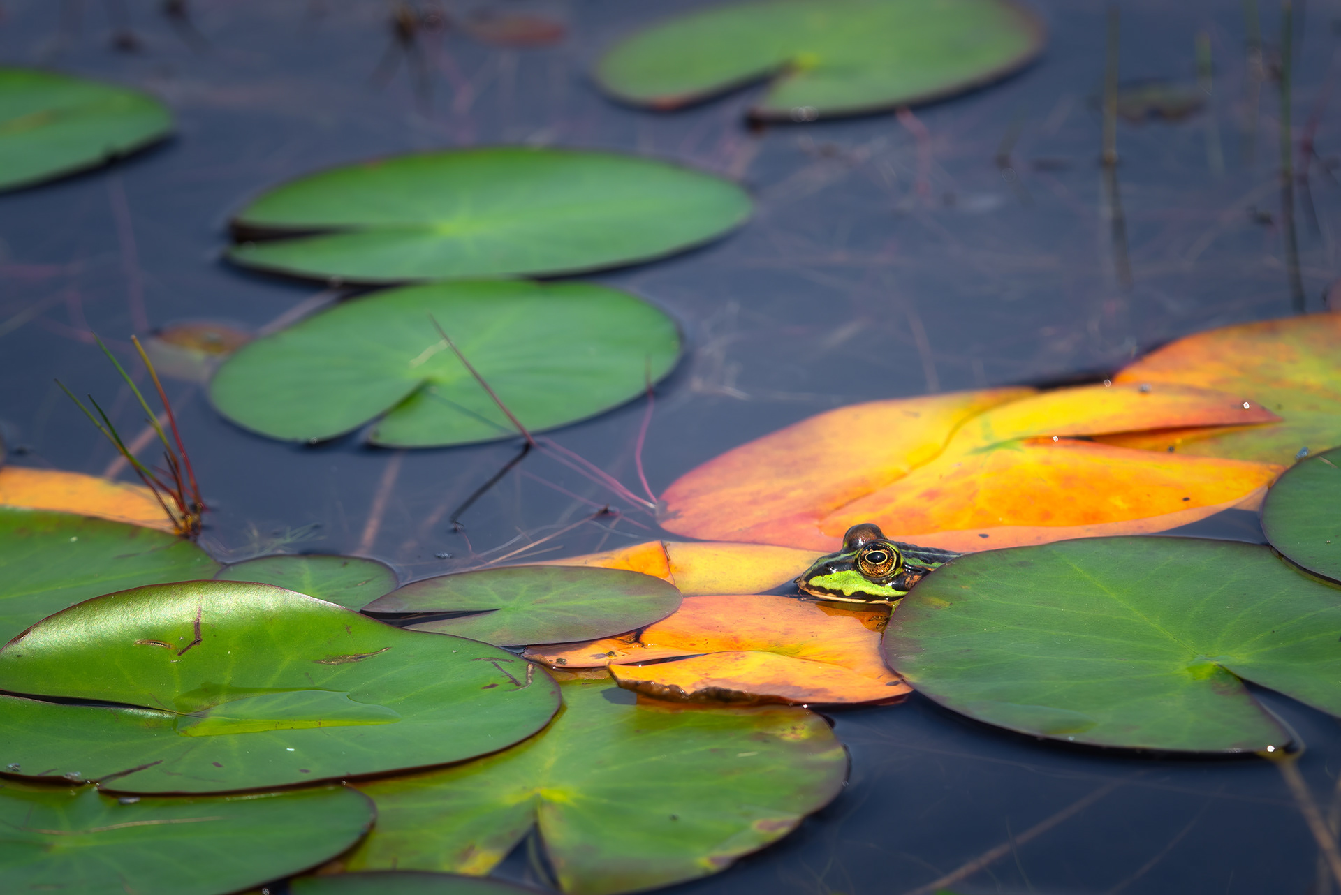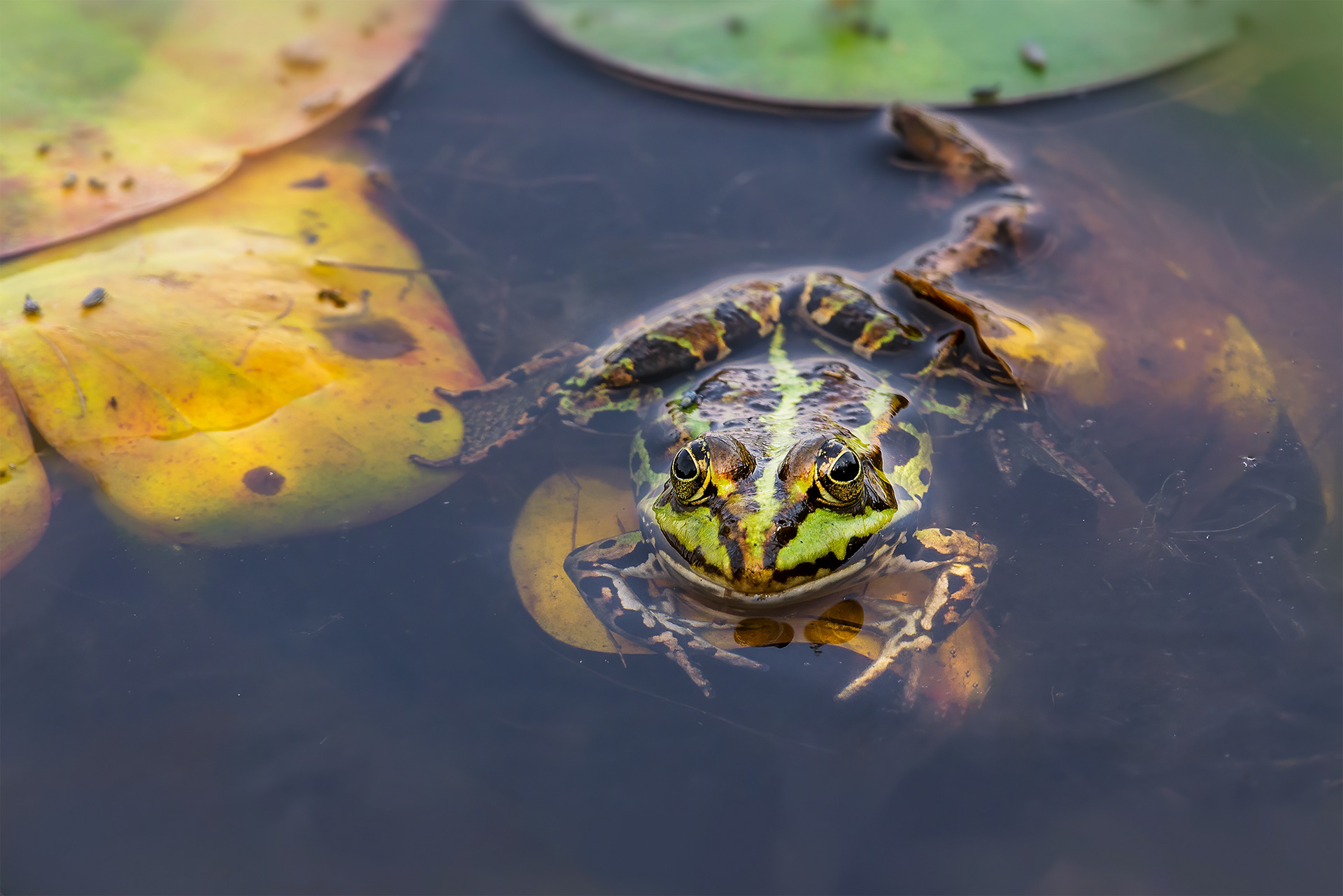 Frogs and salamanders come in a variety of colours, from simple green to more exotic bright colours. In wildlife I find the frog eyes one of the most beautiful. Their pupils are highly diversified, coming in a wide range of different sizes.