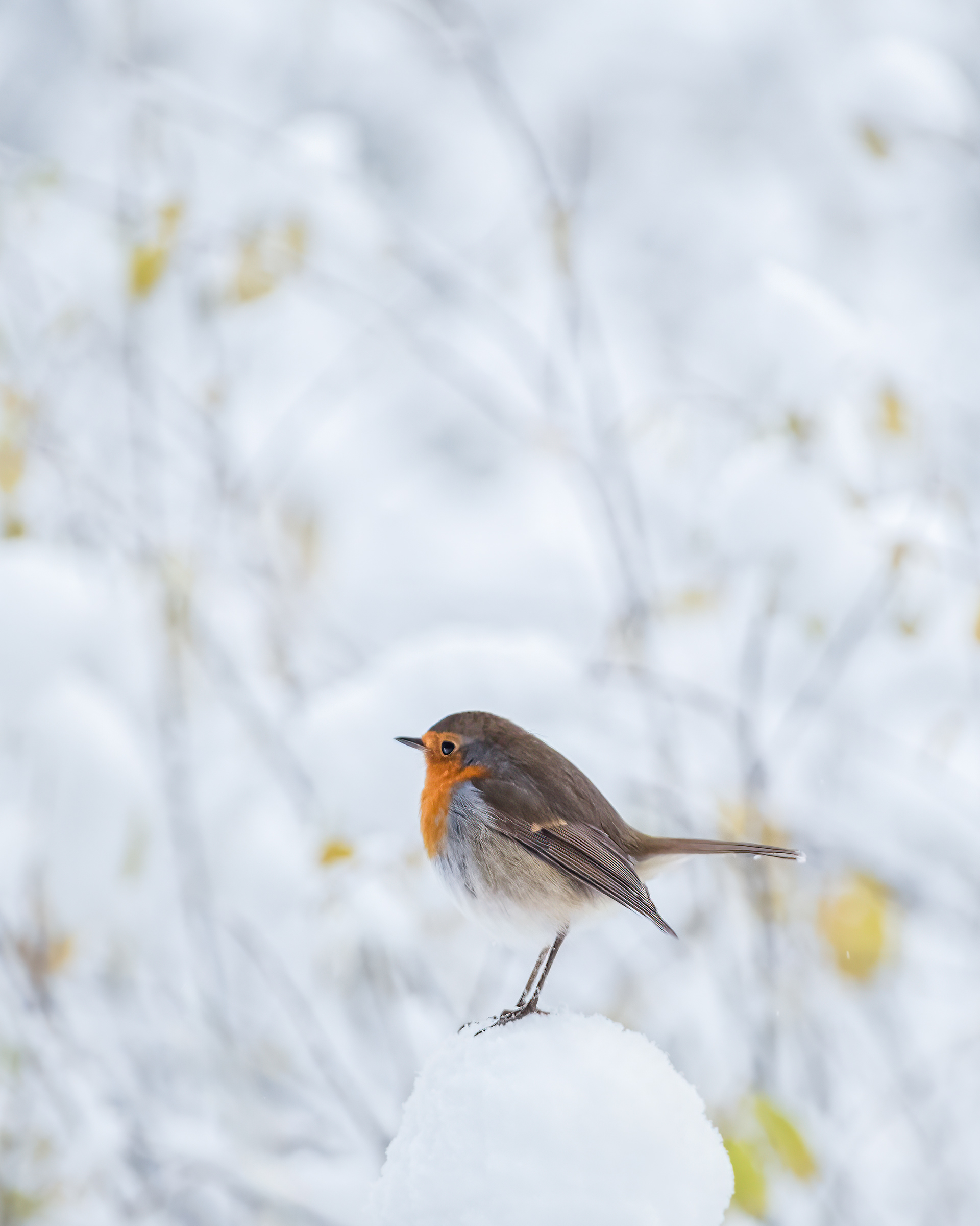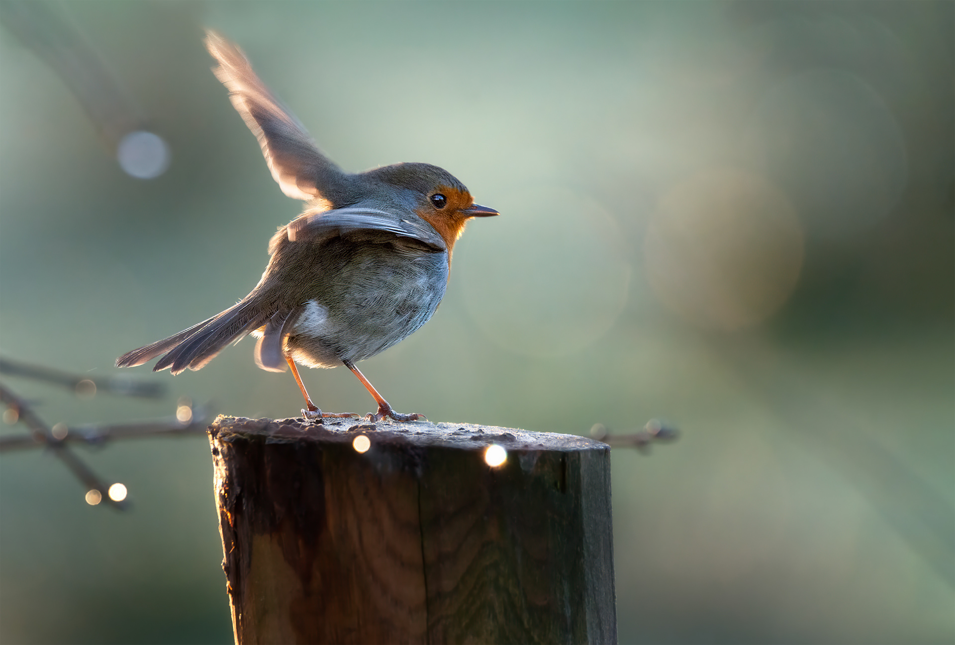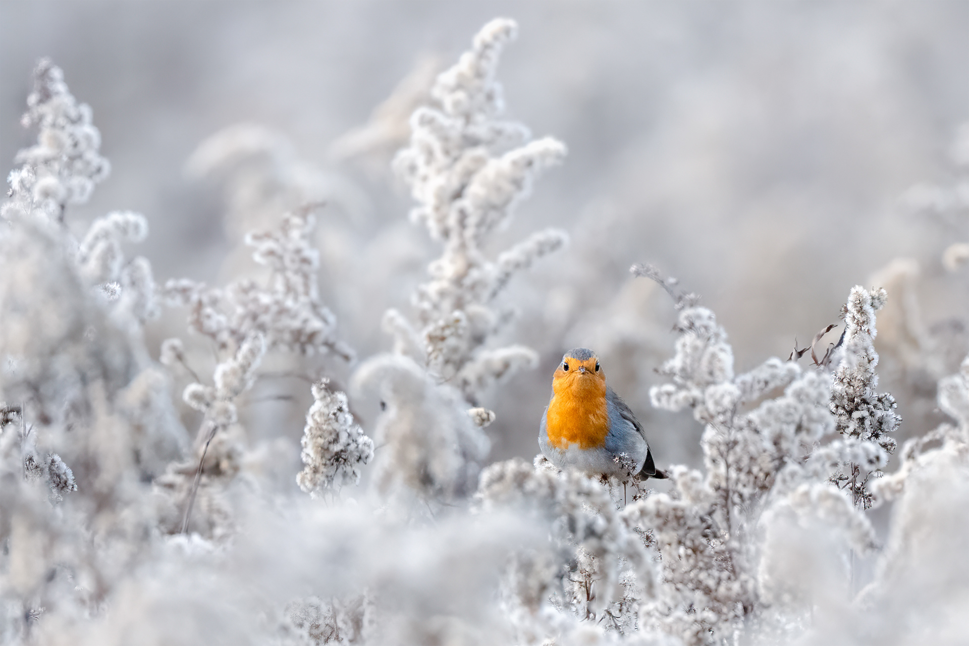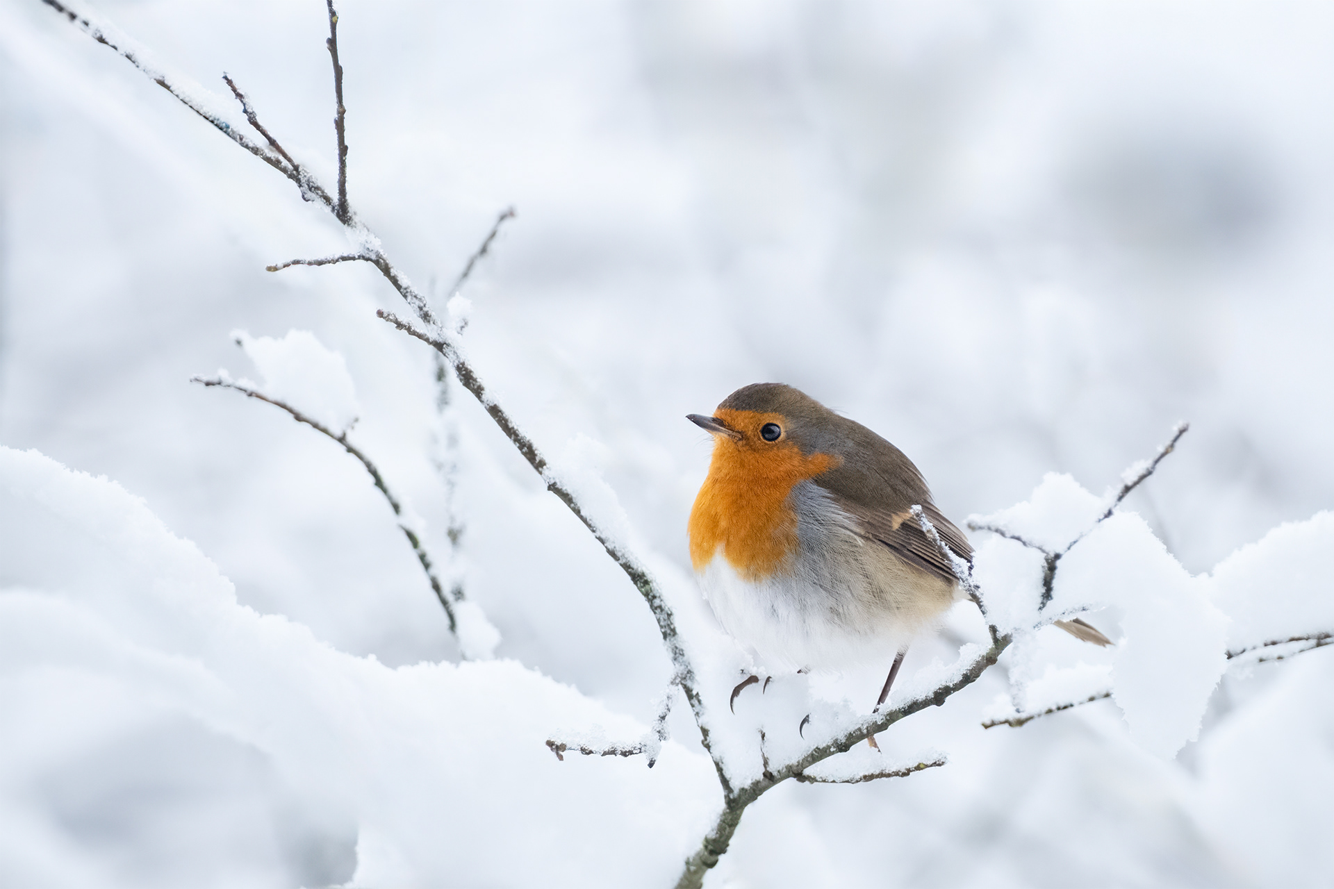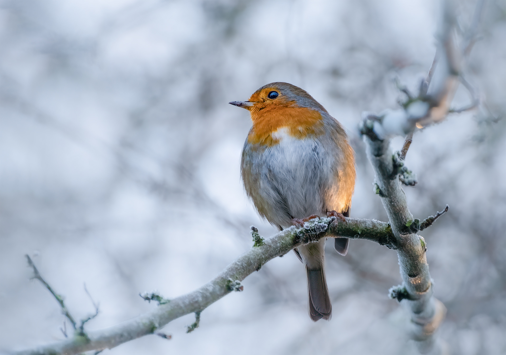 I'm always happy when the robin sings a beautiful song. Robins are very possessive of their territories. Sometimes this bird will be curious and come close to you. It often seems easier to approach this cute appearance in the winter season.