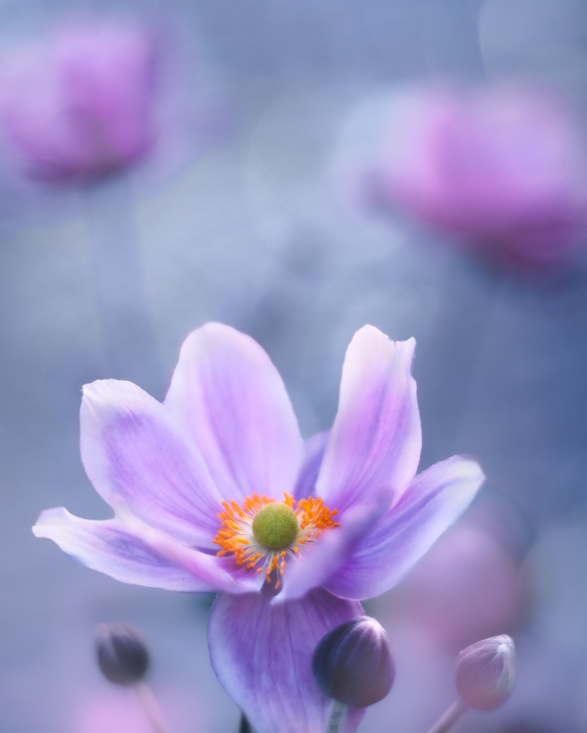 "In Greek, “anemone” means “daughter of the wind,” During the day, anemone flowers open wide for pollination; at night, however, the flowers close their petals .