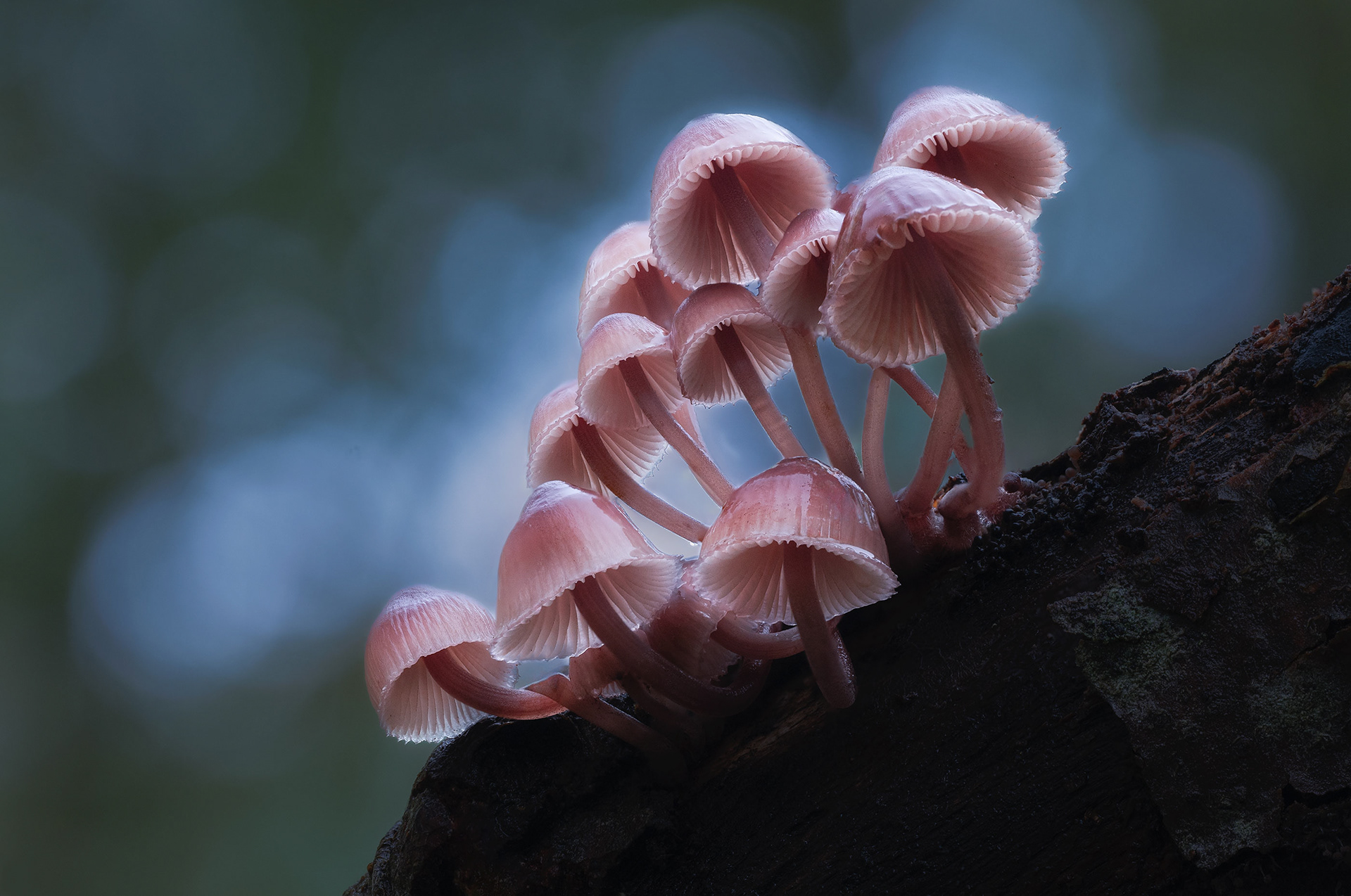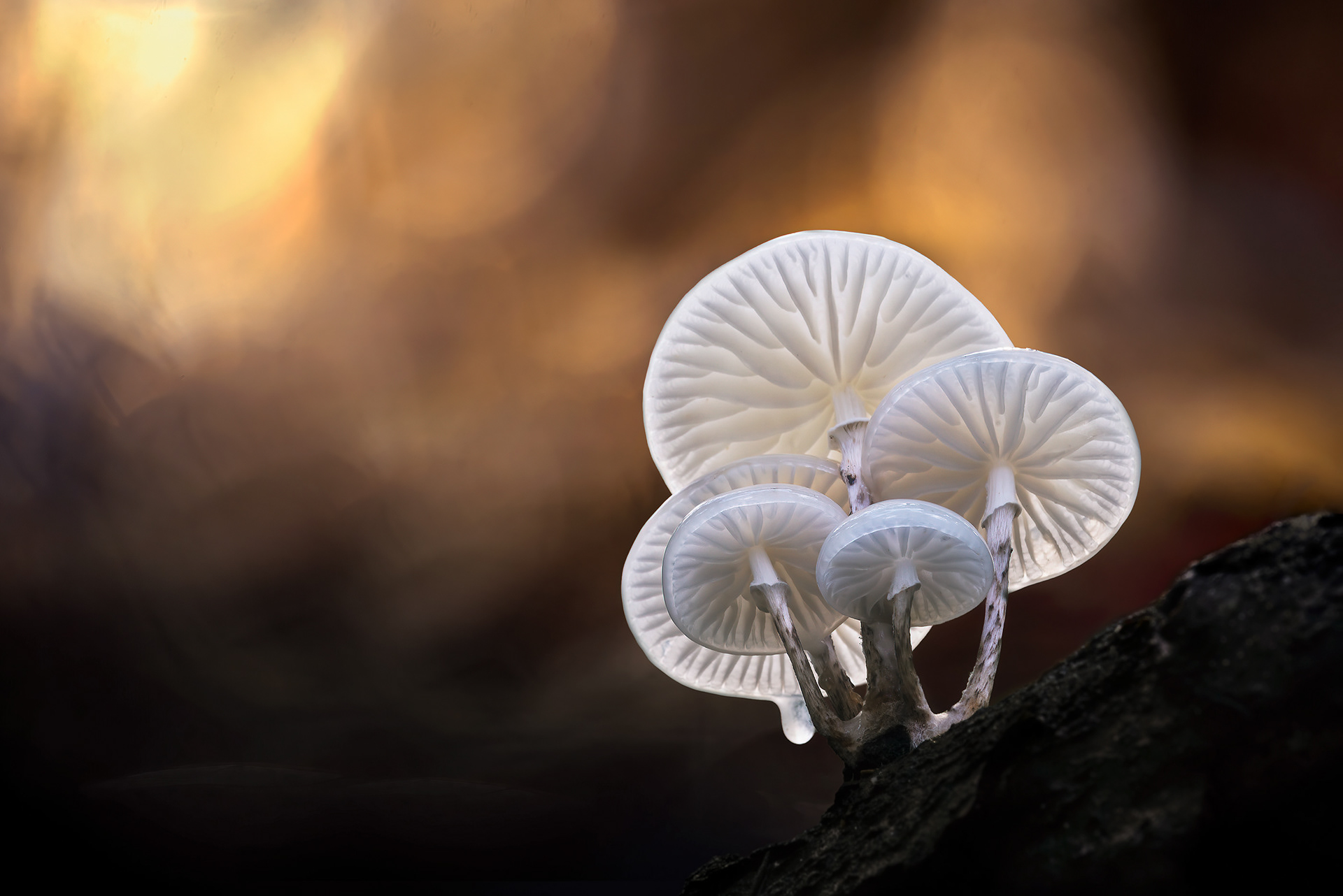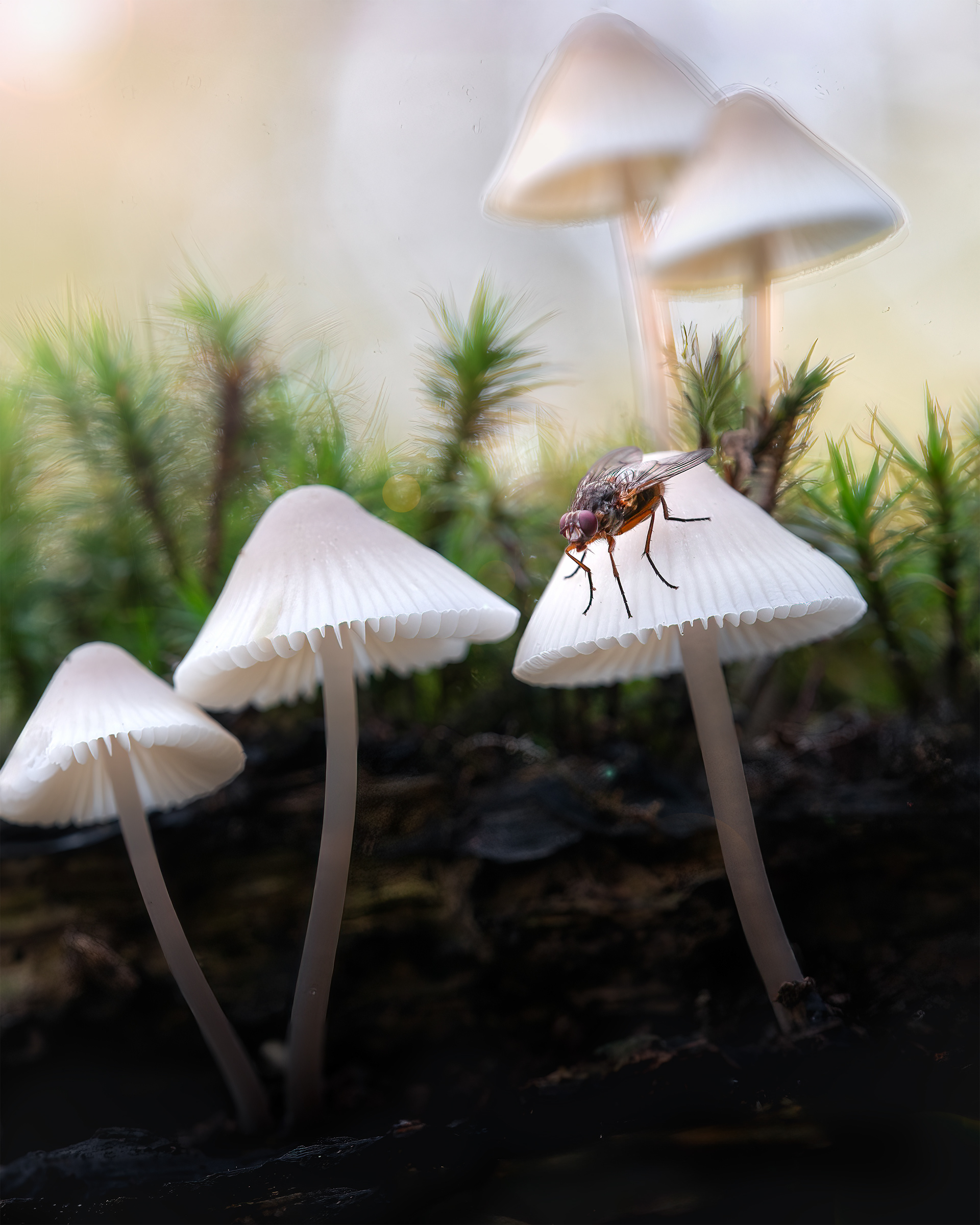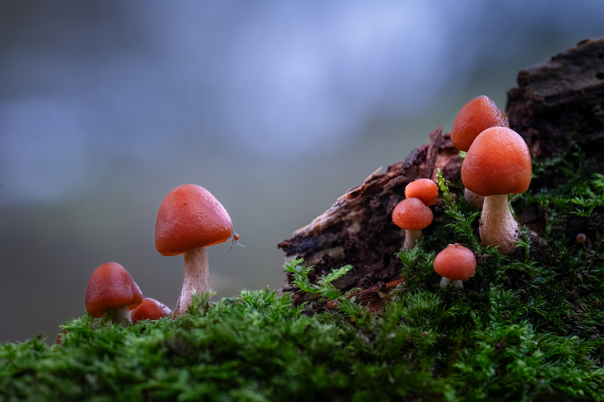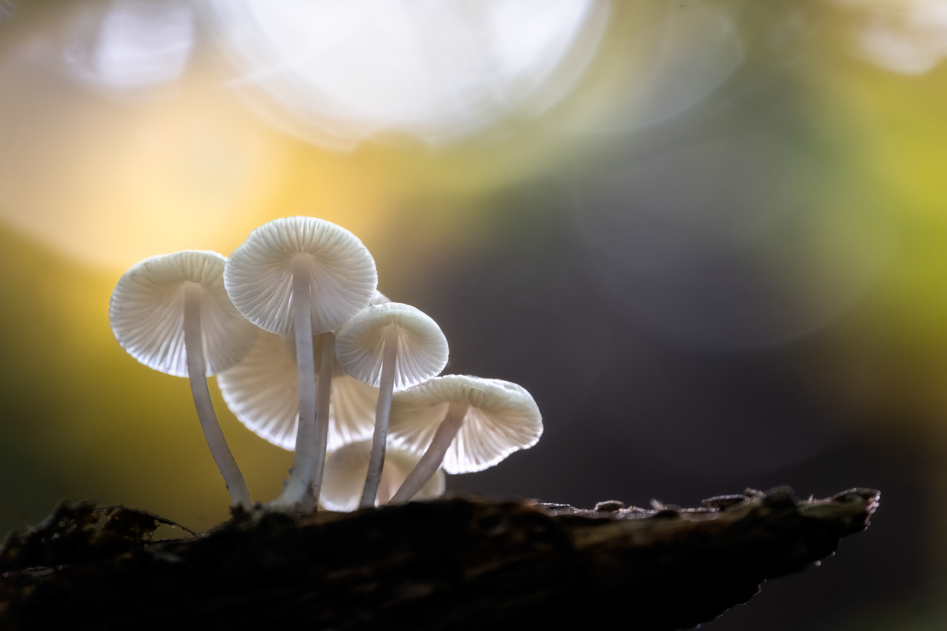 Mushrooms and other fungi reveal an astonishing diversity of shapes, colours and textures. They are fascinating subjects for macro photography, often discovered during quiet forest walks. From translucent porcelain fungi with guttation drops to unexpected encounters with tiny insects or small amphibians, this hidden world continuously surprises when observed up close.