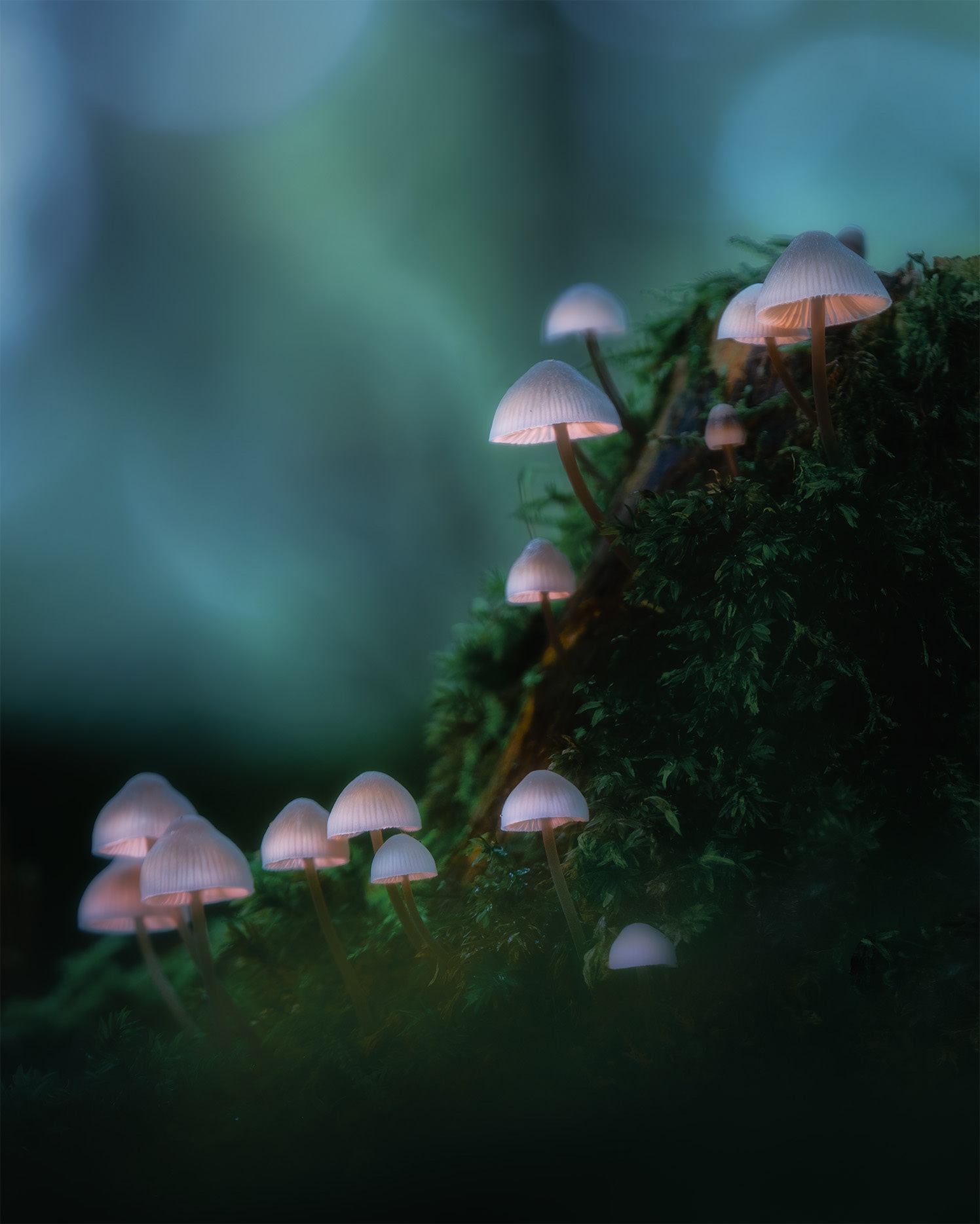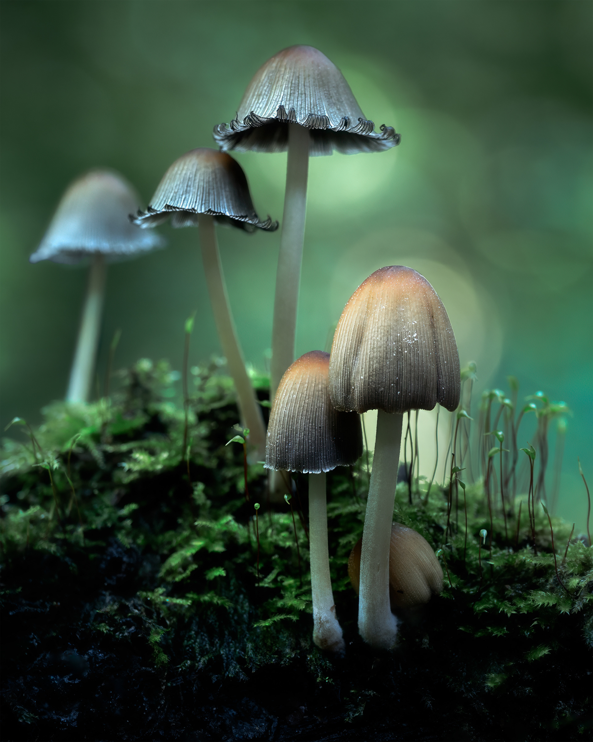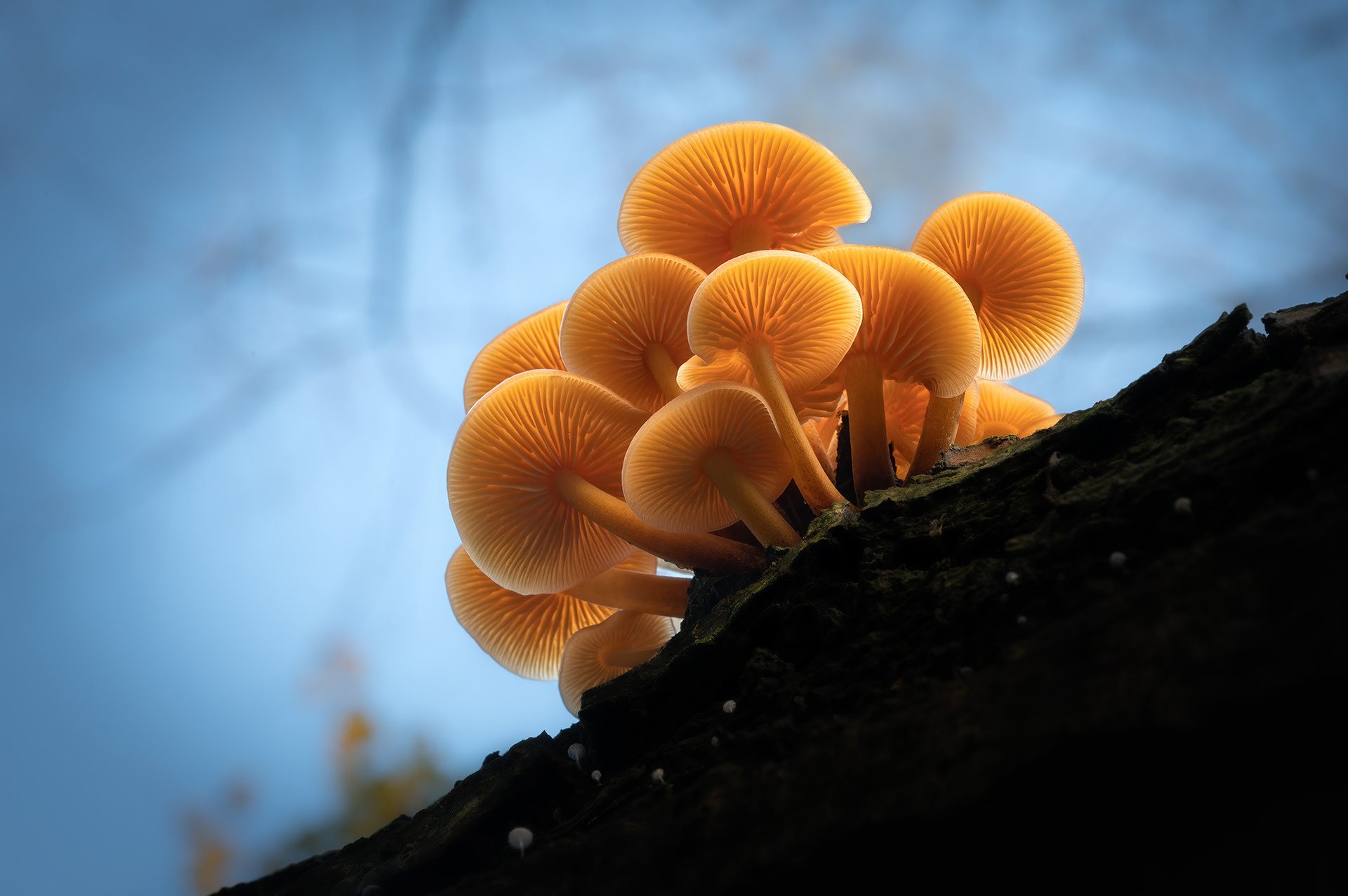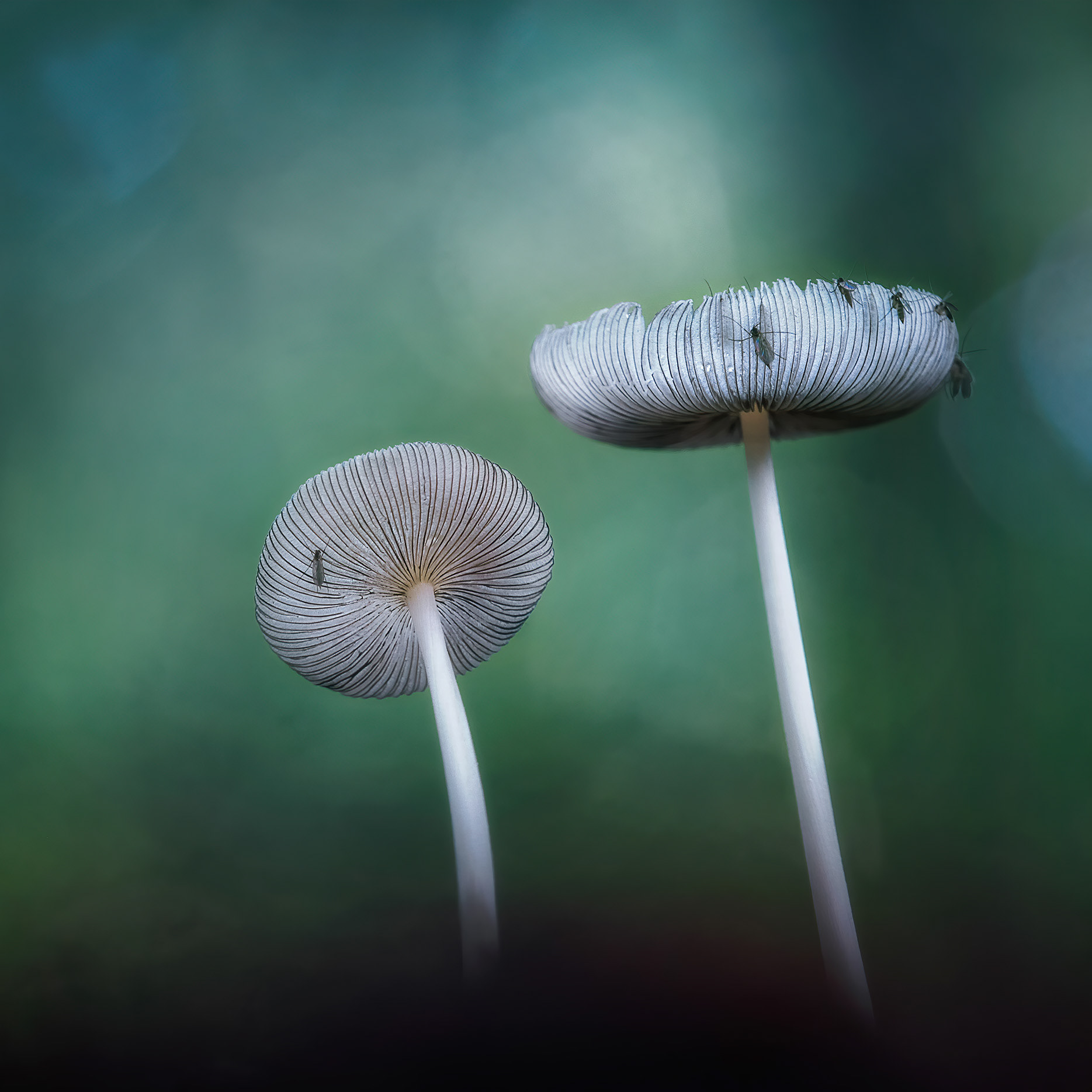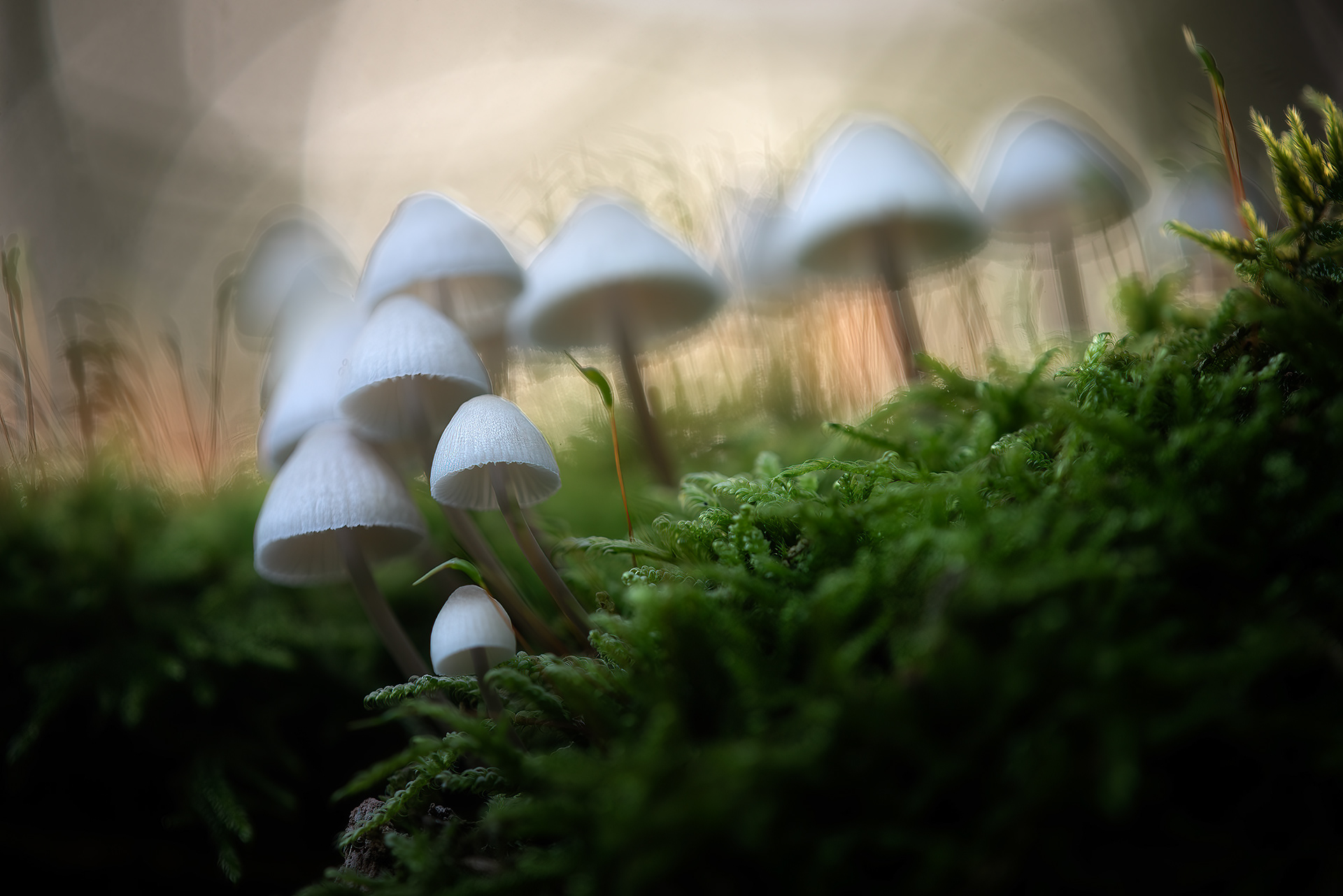 Mushrooms and other fungi reveal an astonishing diversity of shapes, colours and textures. They are fascinating subjects for macro photography, often discovered during quiet forest walks. From translucent porcelain fungi with guttation drops to unexpected encounters with tiny insects or small amphibians, this hidden world continuously surprises when observed up close.