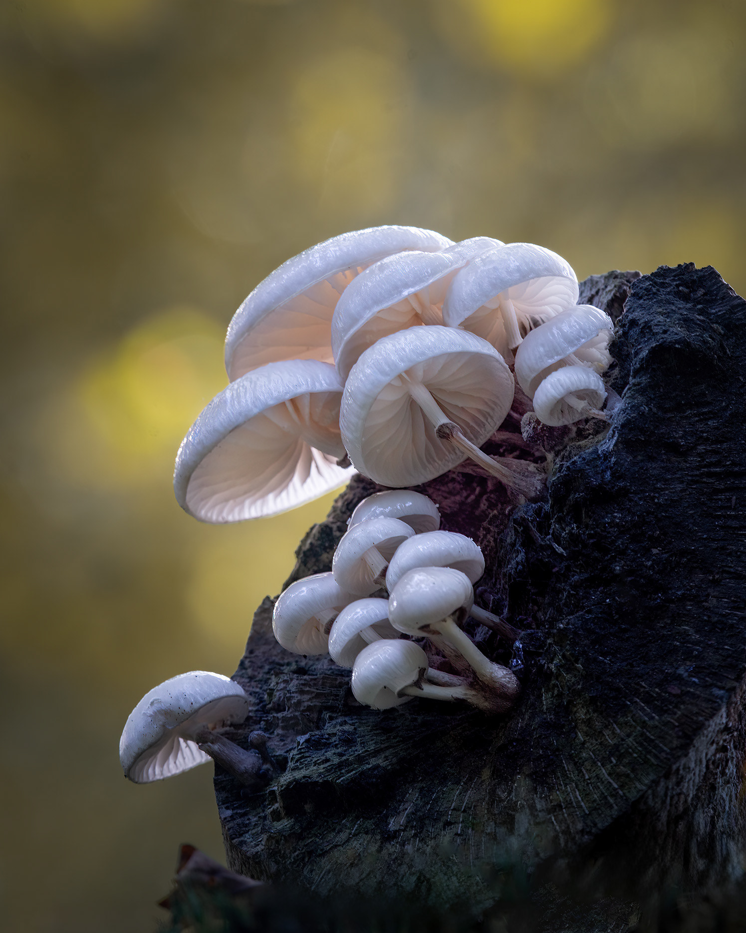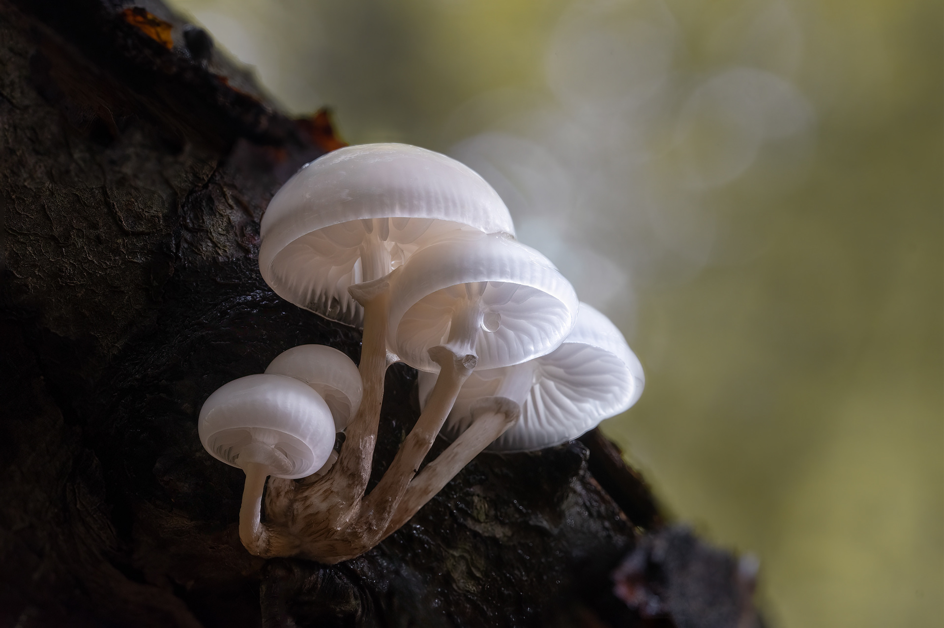 Mushrooms and other fungi come in many shapes, and they make great subjects for my macro nature photography. The porcelain fungus is one these beautiful muschrooms . I like their elegant form and translucency in combination with guttation drops.