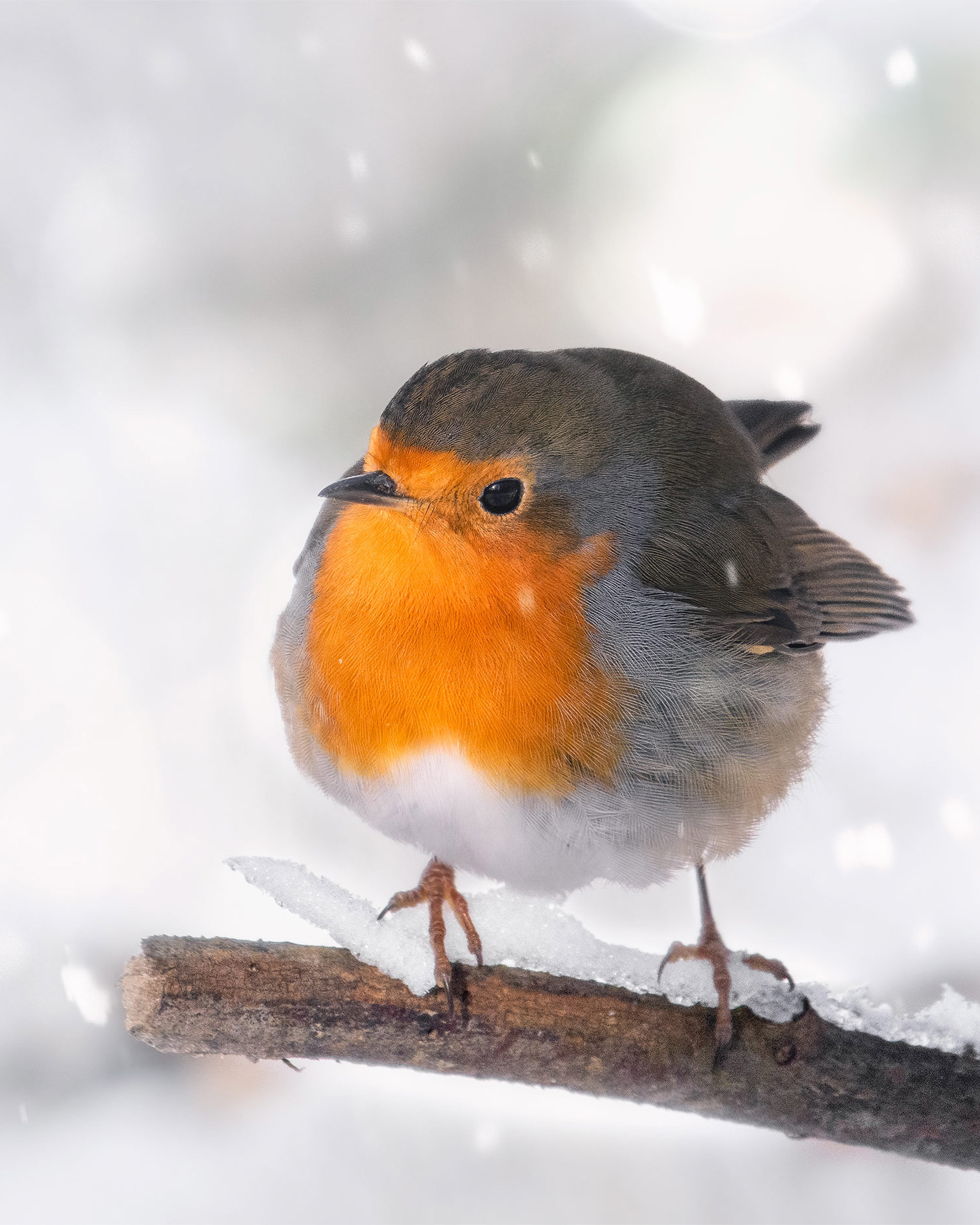 These curious and territorial birds with red breasts provide a noticeable flash of colour against the bright snow. Robins are reasonably tame and in their winter outfit they look so cute .