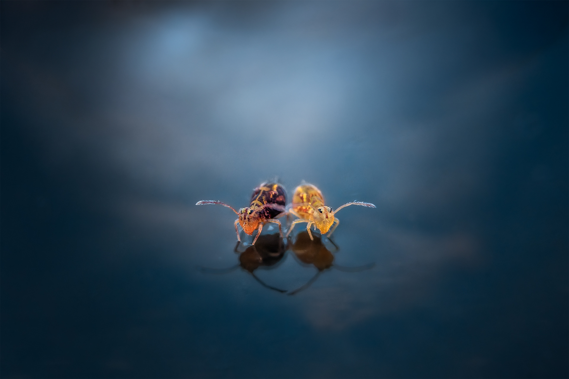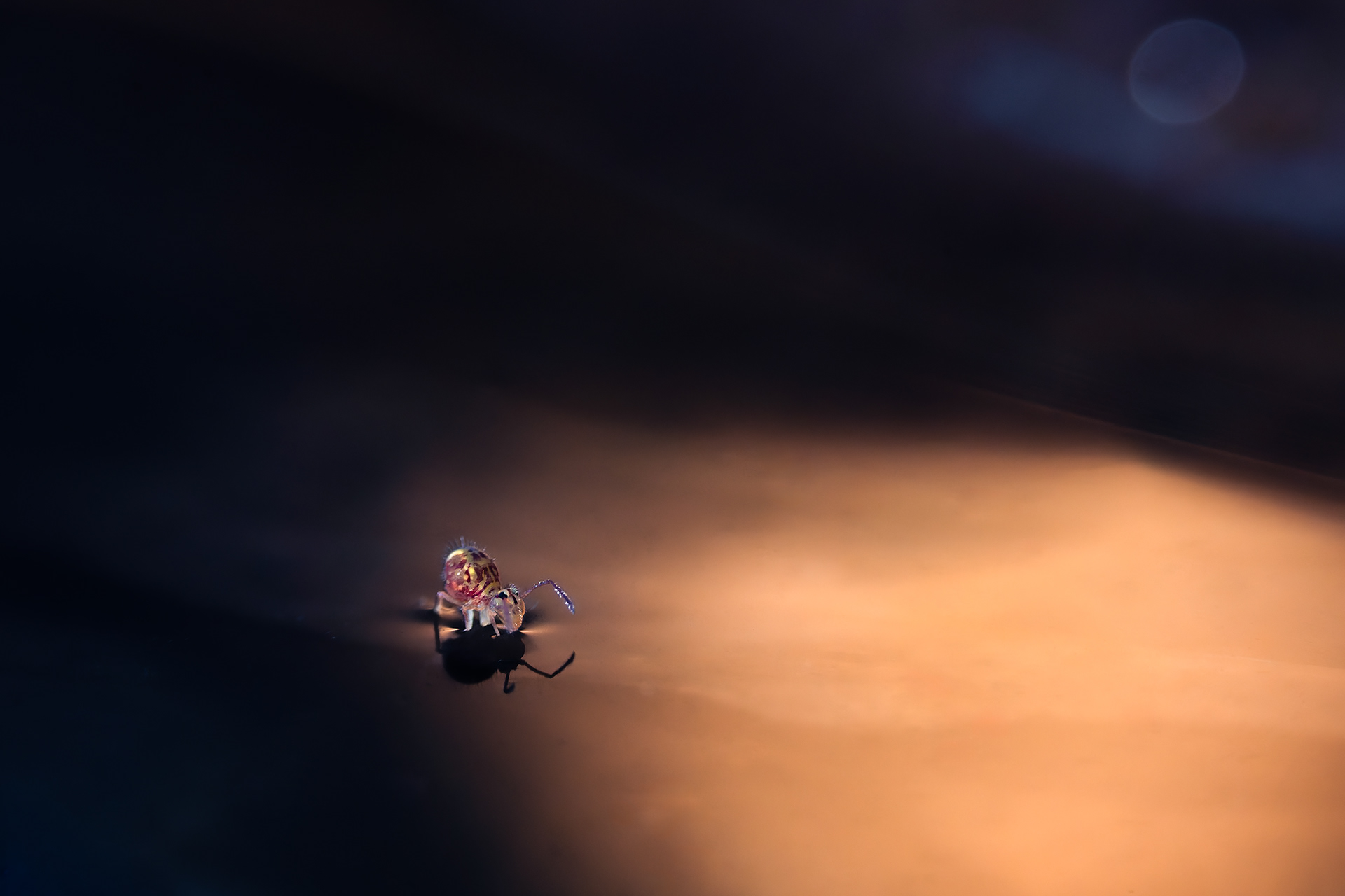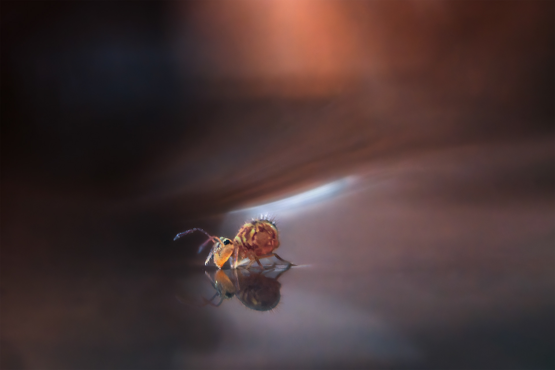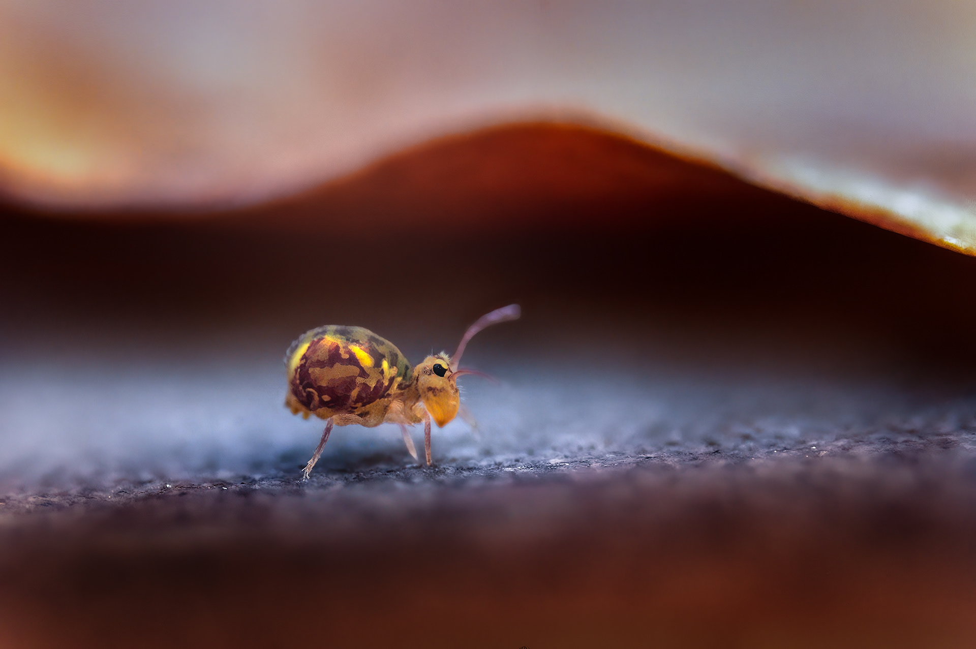 Springtails are captivating subjects with their diverse shapes and colors. Because their miniscule size (1mm) and their jump when disturbed it is not easy to photograph them. Their jump it's al powered by a spring-loaded appendage thucked underneath their bodies, called the furcula.