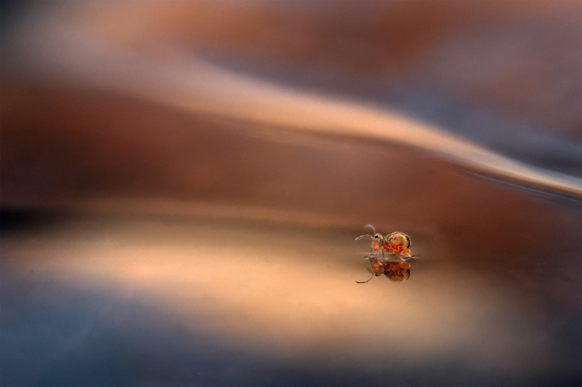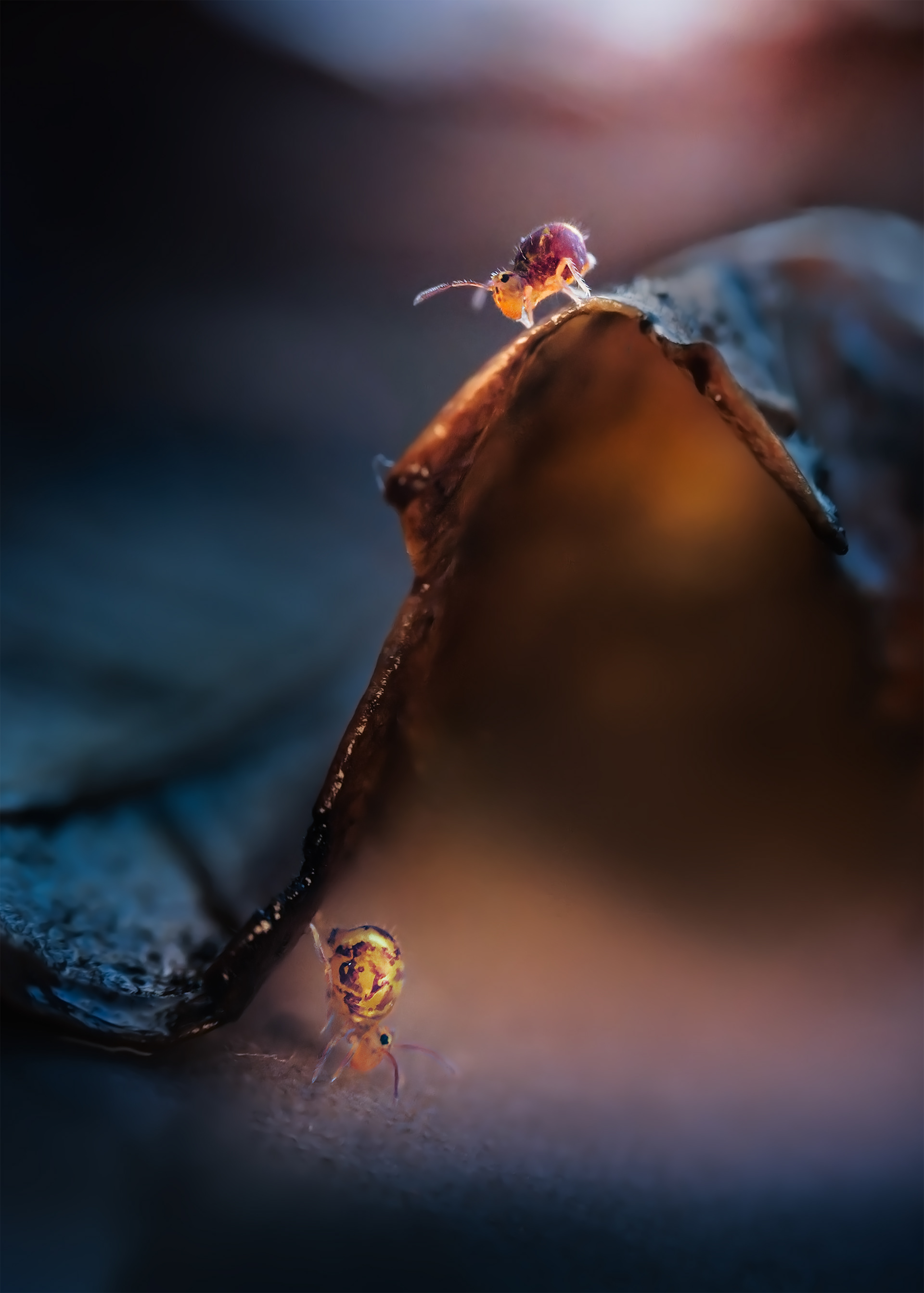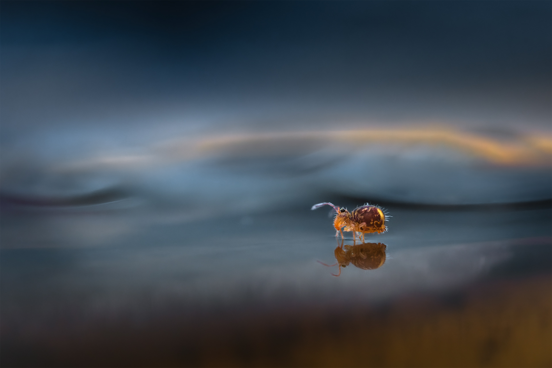 I have tried to create a world of my own around springtails — a hidden, almost surreal universe where these tiny creatures appear to walk over water.