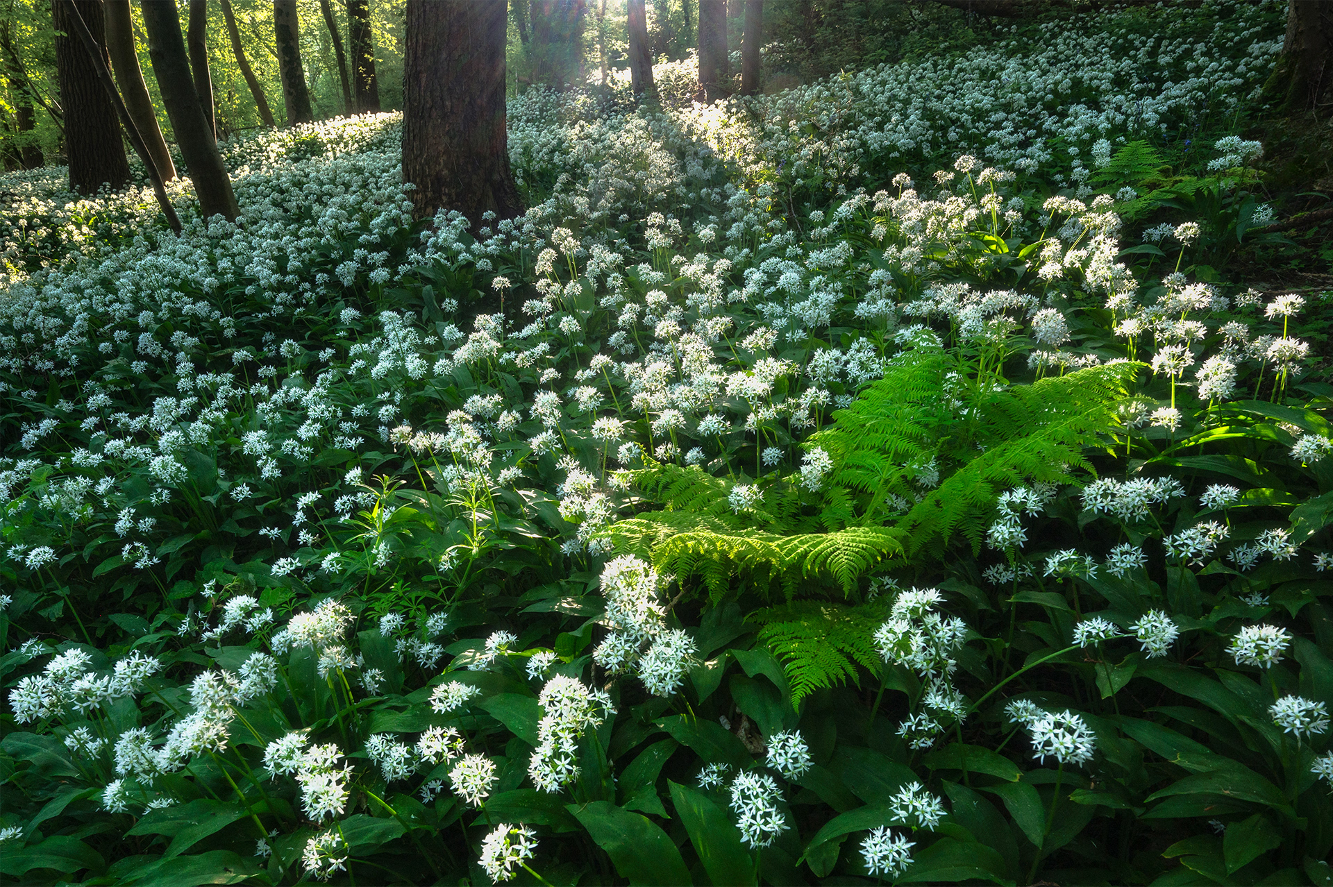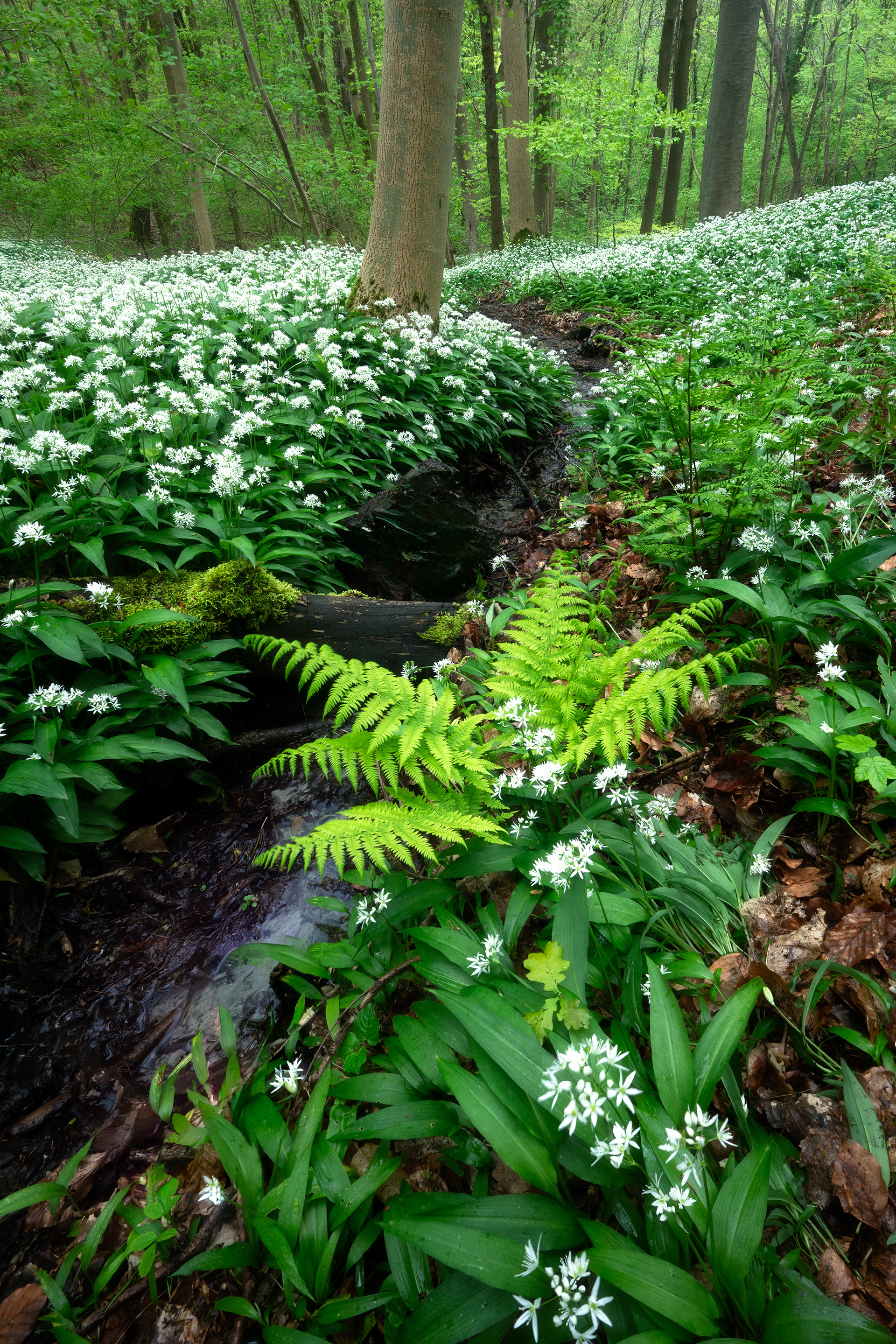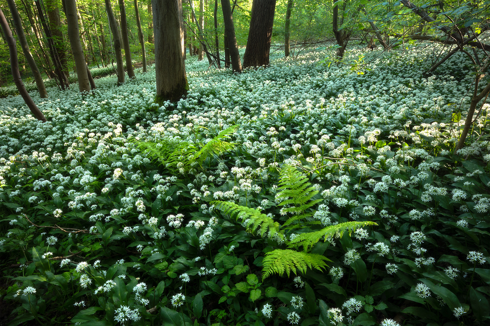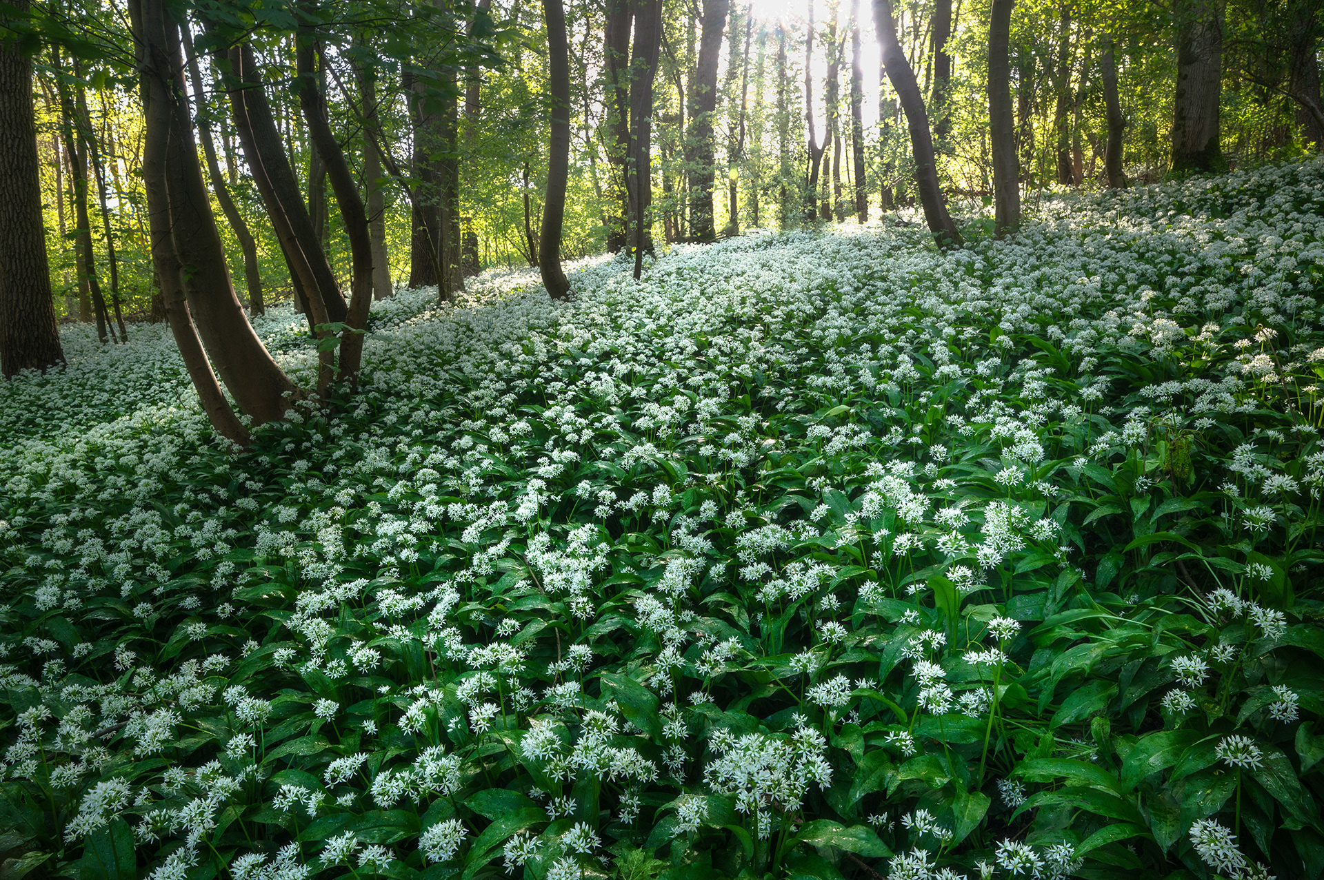 The wild garlic is blooming, some forests turn into a magical, almost otherworldly place. Lush green leaves and endless amount of white flowers covering the forest floor.